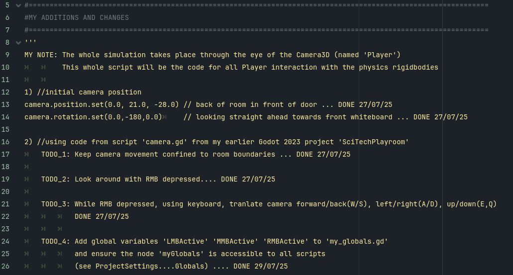 I would like to use this Forumās Showcase/In-Development platform to try and keep folk simply updated on my progress. Please bear in mind that this will NOT be a detailed DevLog and I spend very little time on advanced graphics modelling and rendering. My focus is mainly on the physics engine interactivity. At my age, I am a great believer in the KISS principle!