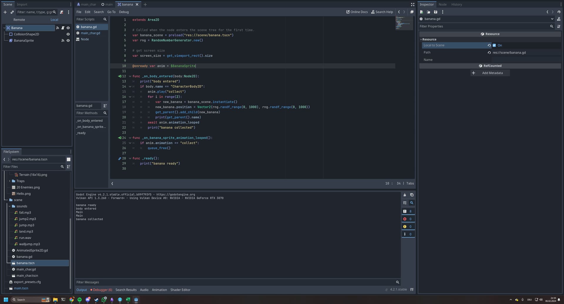 I have a simple Script that i attached to my “Banana” 2dArea.