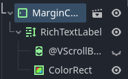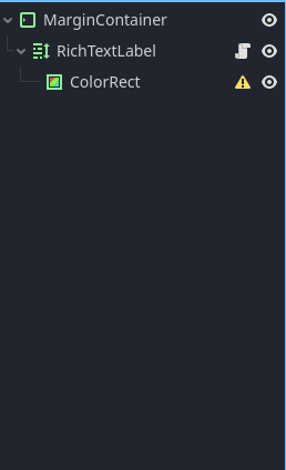 Thank you for your initial reply. It’s been a few weeks since I’ve worked in godot, but I figured it out. When running the scene, the rich text label generates an extra vscrollbar as a child that you don’t see in the editor until you look at the instance in the remote tab. That’s why my code is trying to change child(1) of the RichTextLabel. That new vscrollbar would normally become child(0). It looks like in godot 4.2 that vscrollbar is disabled by default, so my ColorRect is back to child(0)