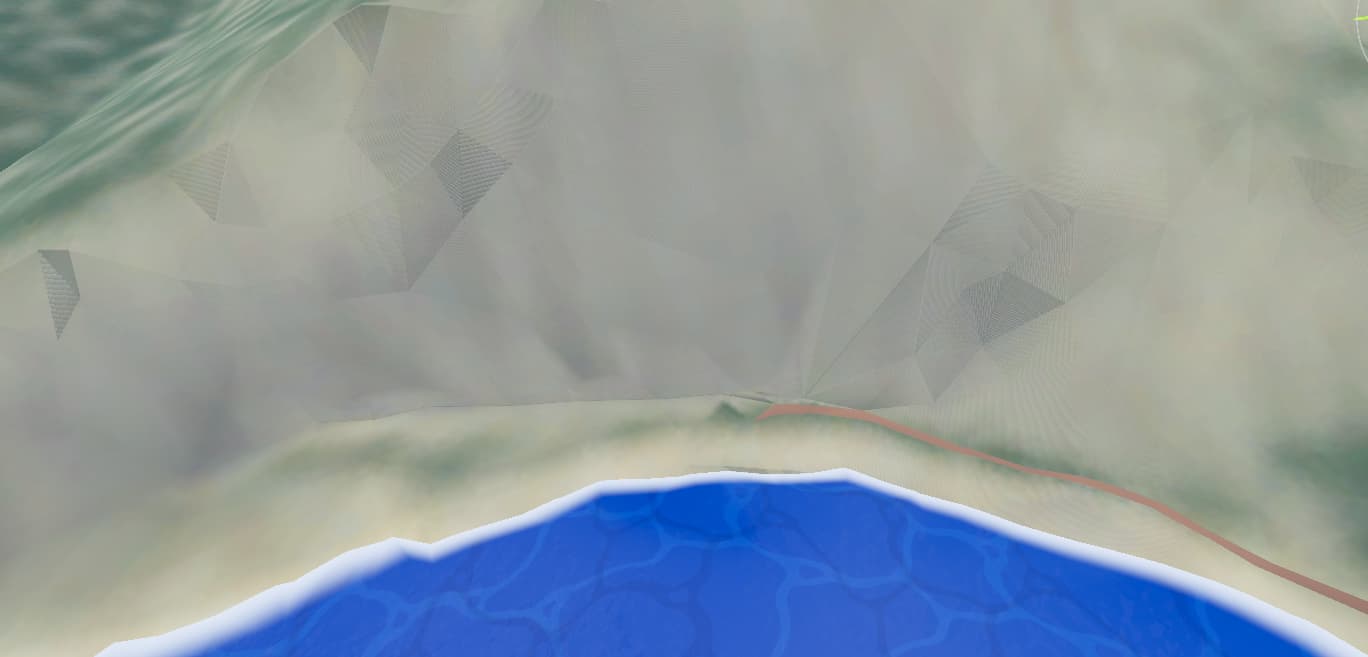 I have this large island model made in blender that is having some shading issues. Specific faces are shaded darker and have weird lines going through them. You can see here: