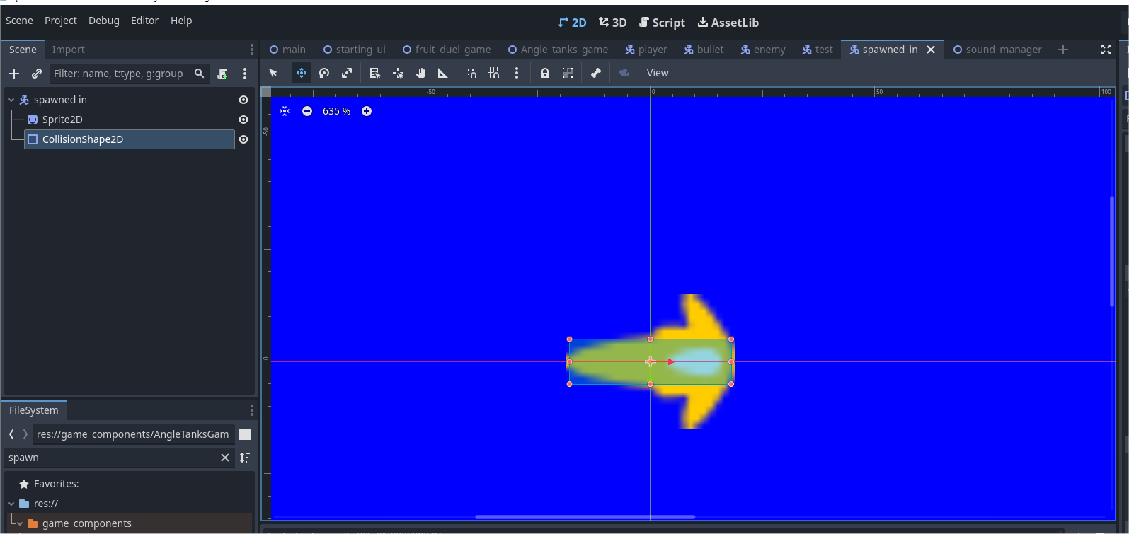 The problem is I need to get the projectile spawning in at the correct spot and it currently isn’t. What I have done is manually insert a sprite showing where the spawn point is and the rotation and you can see the result, it is definitely off-centre: