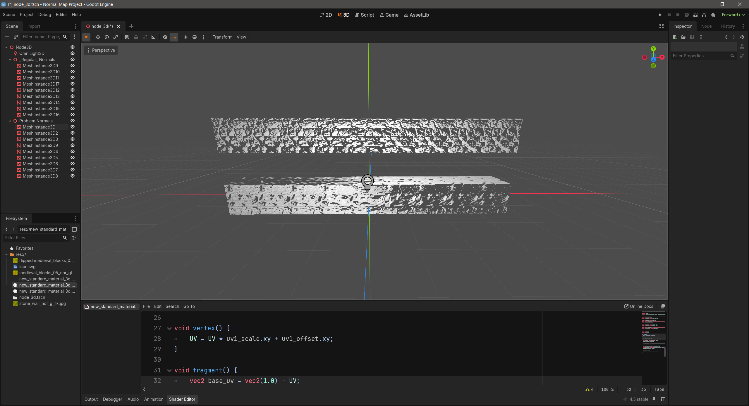 I ran into this issue where this one particular normal map was, for some reason, being really blotchy when it was on one side of the light, as you can see in the picture (bottom is weird normal map, top is fine). This is just a test project to show the issue, both of these rows of meshes are using a plain material with the only thing on them being the normal maps (with the normal scale cranked up to showcase the issue). I’m not quite sure why it’s this specific normal map that’s causing the issue. I’ve tried every import option that I can think might be causing problems, flipping the green channel, etc., but so far nothing. Flipping the image itself does not flip the side that the issue occurs on. And as far as I can tell, the normal texture itself is fine, but I’m by no means a graphics expert so I’m probably missing something. I got it from Poly Haven.