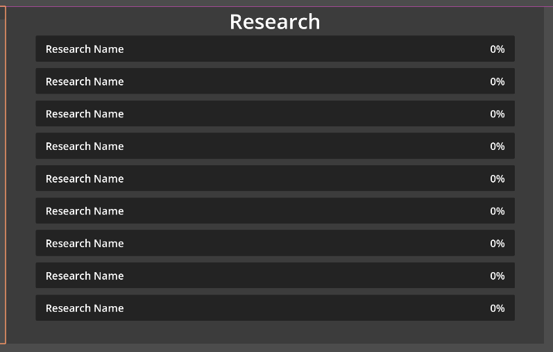 I want to create a “research” system that is a list of options that when clicked slowly progresses until complete and providing new mechanics to play with. I’m coming up with blanks on how to implement it without it being like a thousand different buttons all connected to a script, please help. I’m rather inexperienced so detailed explanations are preferred please and thank you all