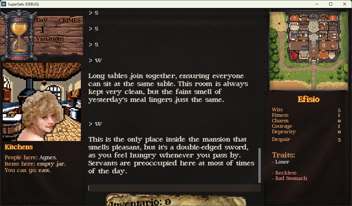 I’ve been working on it for about six months, and at this point I really just want to finish it. It’s feature- and content complete, though I would like to cut some dialogue and introduce a few more quests.