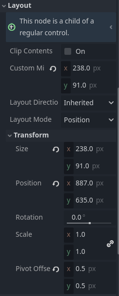I have a TextureButton node that, obviously acts as a button, having a normal texture and a pressed texture. But for some reason, the area where I can click is shifted downward, as shown in the image below. I’ve already tried setting the pivot to 0.5 x and 0.5 y as I have seen many people try, but that hasn’t worked. I’ve also attached an image of the inspector of the button below.