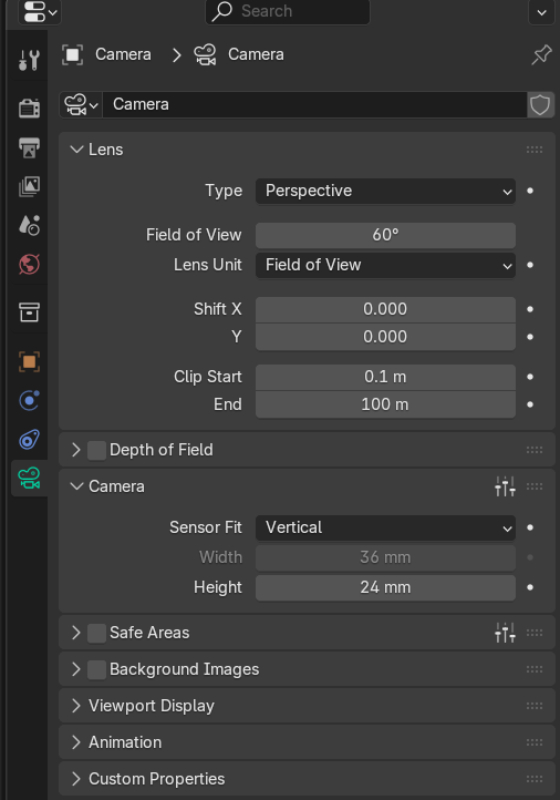 - Set Camera → Sensor fit = Vertical