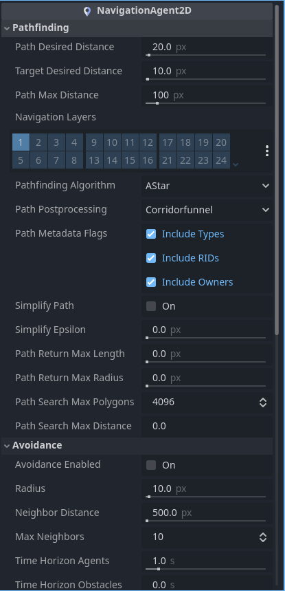 I cannot click your picture to expand it enough to read what’s in your screenshot. Probably also going to need more info about how you set up the NavigationRegion2D, and how you generated your NavMesh.
