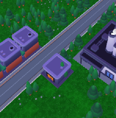Placing buildings “south” of a road sometimes doesn’t work, while placing on the other side does. The building in center below could not be placed there, but could be placed one cell away from the road. Same with the plant on the right. This does not change when rotating the camera.