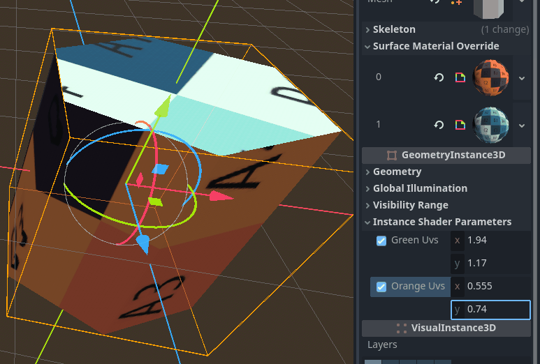 My objective is to be able to have hundreds of instances of the cylinder, all of different colors by panning UVs over a palette. I want the panning to be independent from other instances and also from other material slots, and ideally all with the same material to make it more efficient, hence the parameters on the instances. Is this a design limitation that I just don’t know about, or a bug, or something I’m doing wrong?