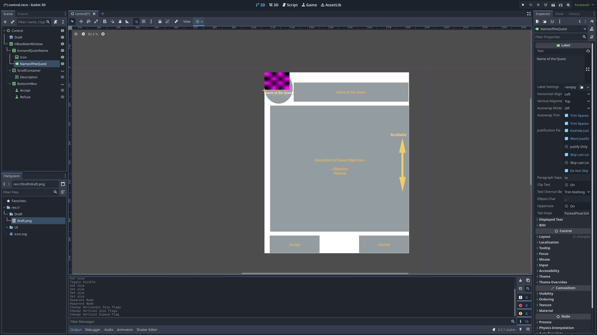 I’m trying to make from scratch quest window inspired by WoW using UI system in Godot.