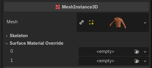 The colour dictionary attached to the inherited model may seem redundant during use but it is what gets saved at the end of level design and when saving game progress. My save file is essentially an array of resources containing a scene path reference, the colour dictionary and some other game-specific dictionaries such as the character’s location and current state. Loading a game reads this array, creates an instance from the scene path and pokes in all the saved dictionary values.