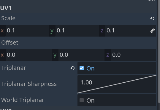 It depends on the number of materials you’re using in the scene. Triplanar means that Godot ignores UV maps and instead reads each texel three times, then combines them into the final result based on the normal vector of the corresponding face on the mesh surface.