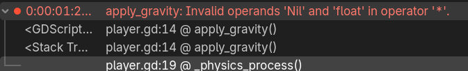 I think the issue may be related to when gravity is assigned. You don’t assign it in your player script, so it must be assigned a value elsewhere for the script to work. If it’s assigned in another function, and gravity is only assigned after the node is ready, then the gravity variable will not have a value when the player script tries to use it, resulting in an error?