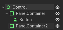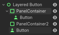You need the PanelContainer as a parent of Button so that its corners don’t stick beyond the rounded corners. You need the second PanelContainer as a sibling to the first, lower down, so that the Buttoncorners don’t stick into the outline.