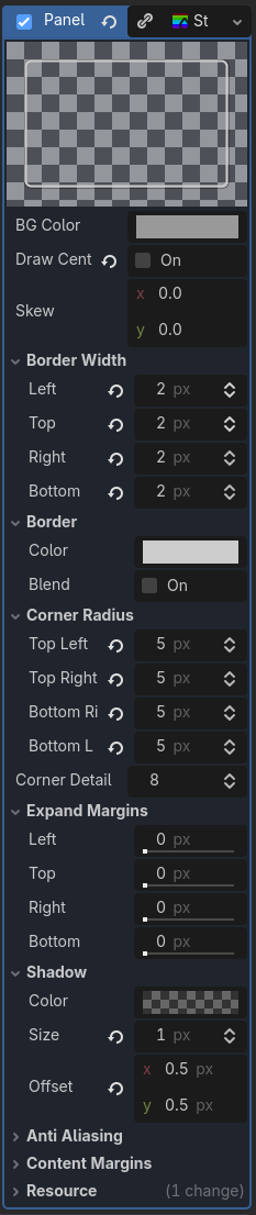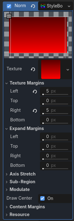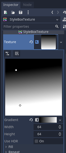 However, now i can no longer change border, corner radius, shadow etc of the button when its a StyleBoxTexture (Instead of StyleBoxFlat)and GradientTexture2D. Or how do change it now when my button has a gradient? It seems like StyleBoxFlat cant have a gradient?