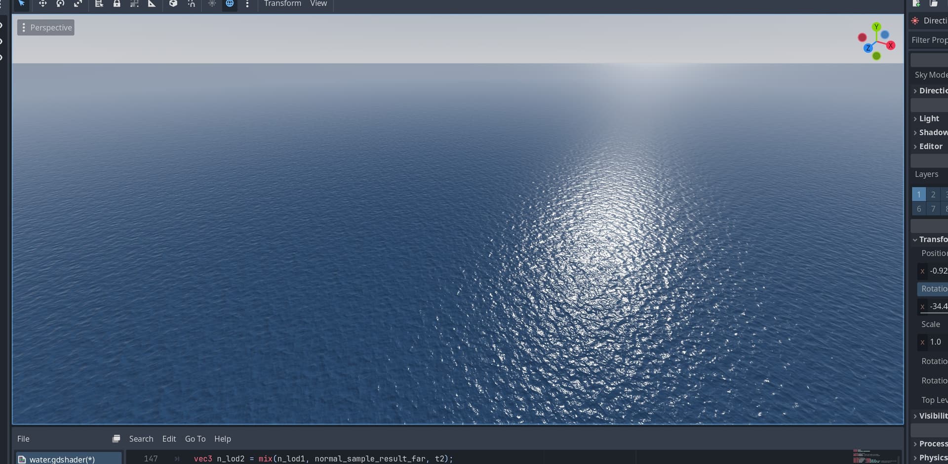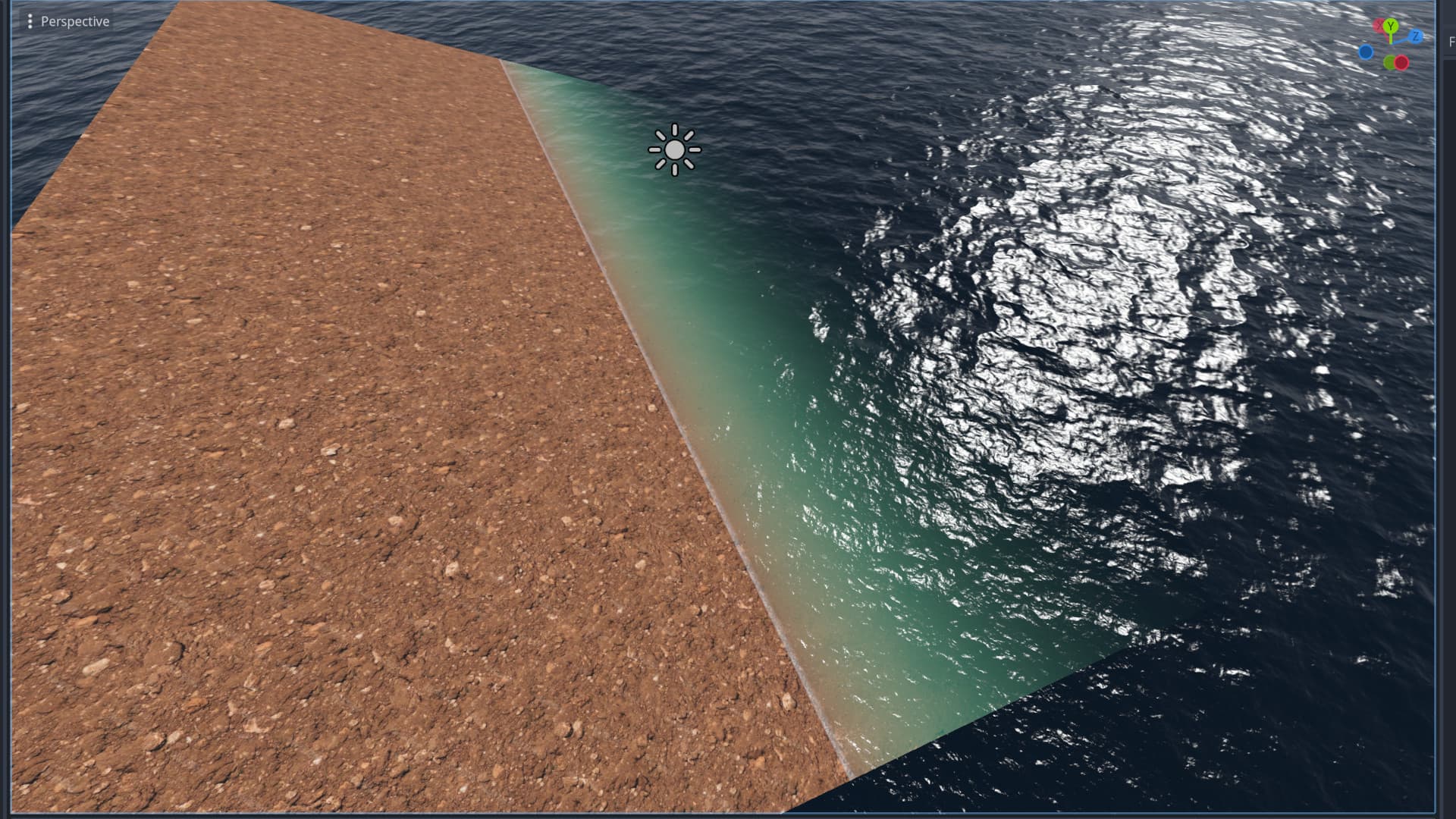 The second thing I’ve been working on is that the surface looks a lot like plastic. So for molten plastic this would already work because it’s fully opaque. Water interacts with light differently in that surface areas that point away from the sun aren’t usually darkened all that much because water is translucent.