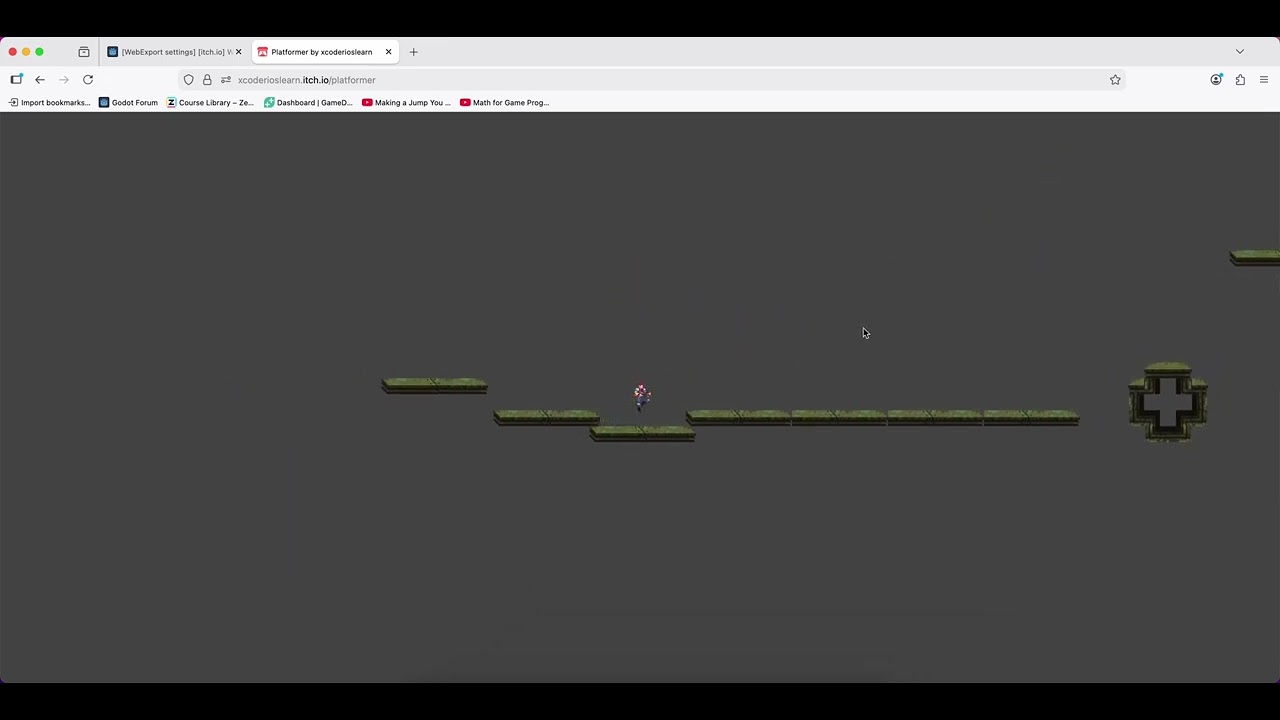 Simple 2d platformer , with one level set as opening level , it use mouse and axis x and axis y to jump .