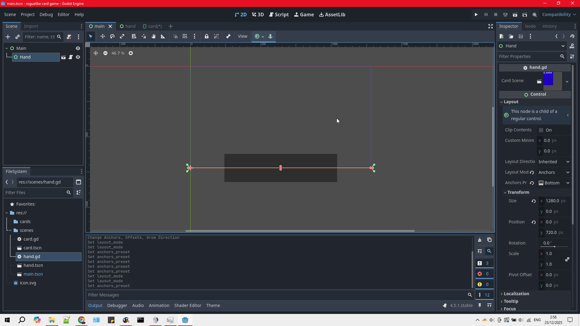 So I’m trying to offset the rectangle at the bottom of the main scene so that it’s a little bit above. I tried looking for offset, but only found pivot offset, which I don’t think is what I’m looking for. I tried googling, asking ChatGPT, and everyone says it should be there. They said the anchor should be bottom wide. They said it should be below the anchor and before the transform section. But on my godot it’s not there. What am I missing? This is driving me crazy.