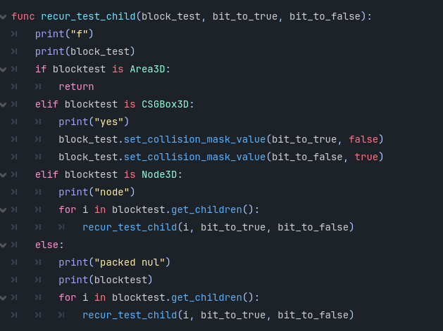 I am making a map editor for my game. I do not want that the block that is following the cursor has the same collision_mask as the blocks already put on the grid. Some block of my game are compose from others, that is why I made this function to find every CSGBox3D and change their collision_mask.