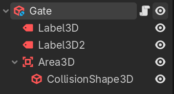 I have made a Gate scene, consisting of the following nodes and code. In the level scene, the first gate I drop in works flawlessly. The player types a code when the CharacterBody is within the gate’s Area3D, the signal connects and the gate lowers. But it only works with the first gate I put into the level scene (not the first I interact with or the first in the node tree), and I need several. This doesn’t change if I make subsequent gates local.