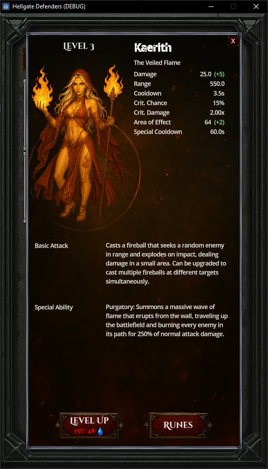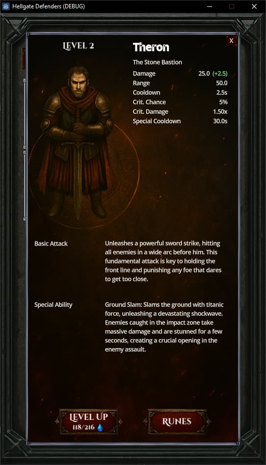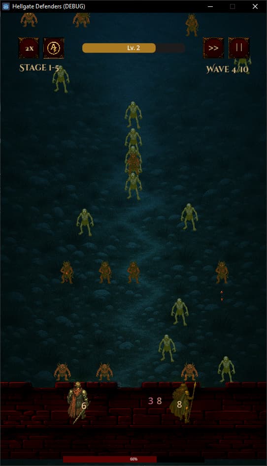 I’m developing Hellgate Defenders, a mobile-first tower defense game with roguelike elements, inspired by games like Diablo. The core mechanic revolves around placing up to five heroes along a wall to defend the human kingdom from endless enemy waves.