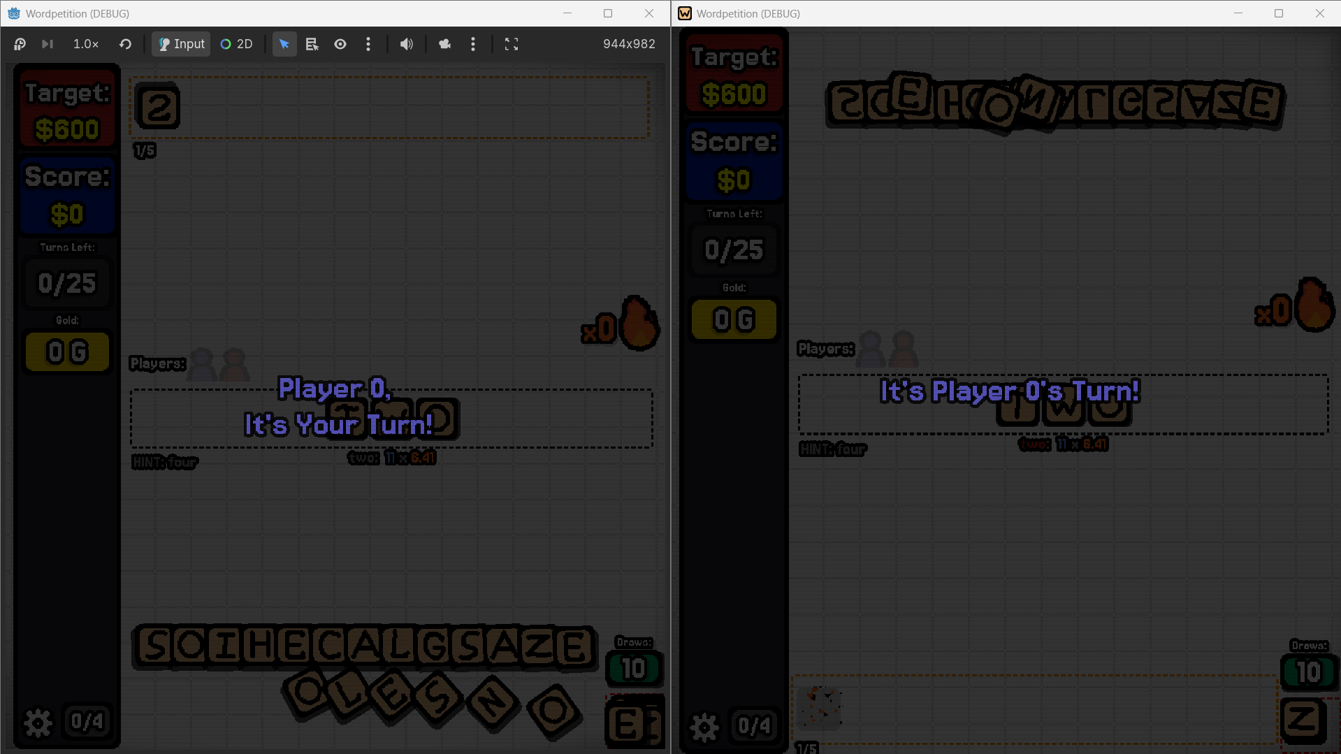 I also reworked the multiplayer turn system. Before it would ALWAYS pass the turn after one move, which led to nobody being able to spell the words they wanted (you couldn’t ever get close enough to the special word you needed).