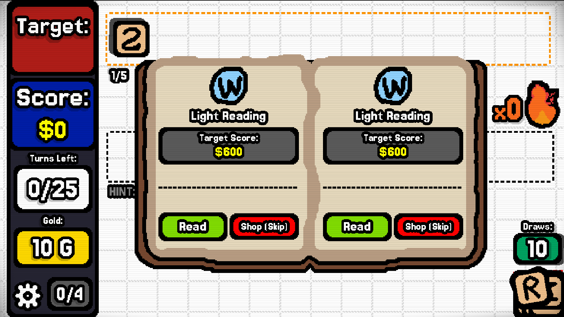 Now I just need to add in boss blinds and make the progression system more clear (the little 0/4 on the bottom is supposed to be the chapter count).