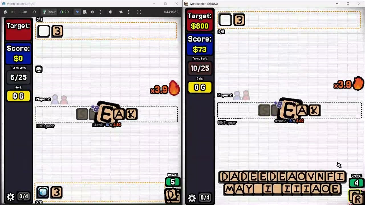 The extra word cards location was changed to the held letters to make the mechanic less rng-heavy and more used.