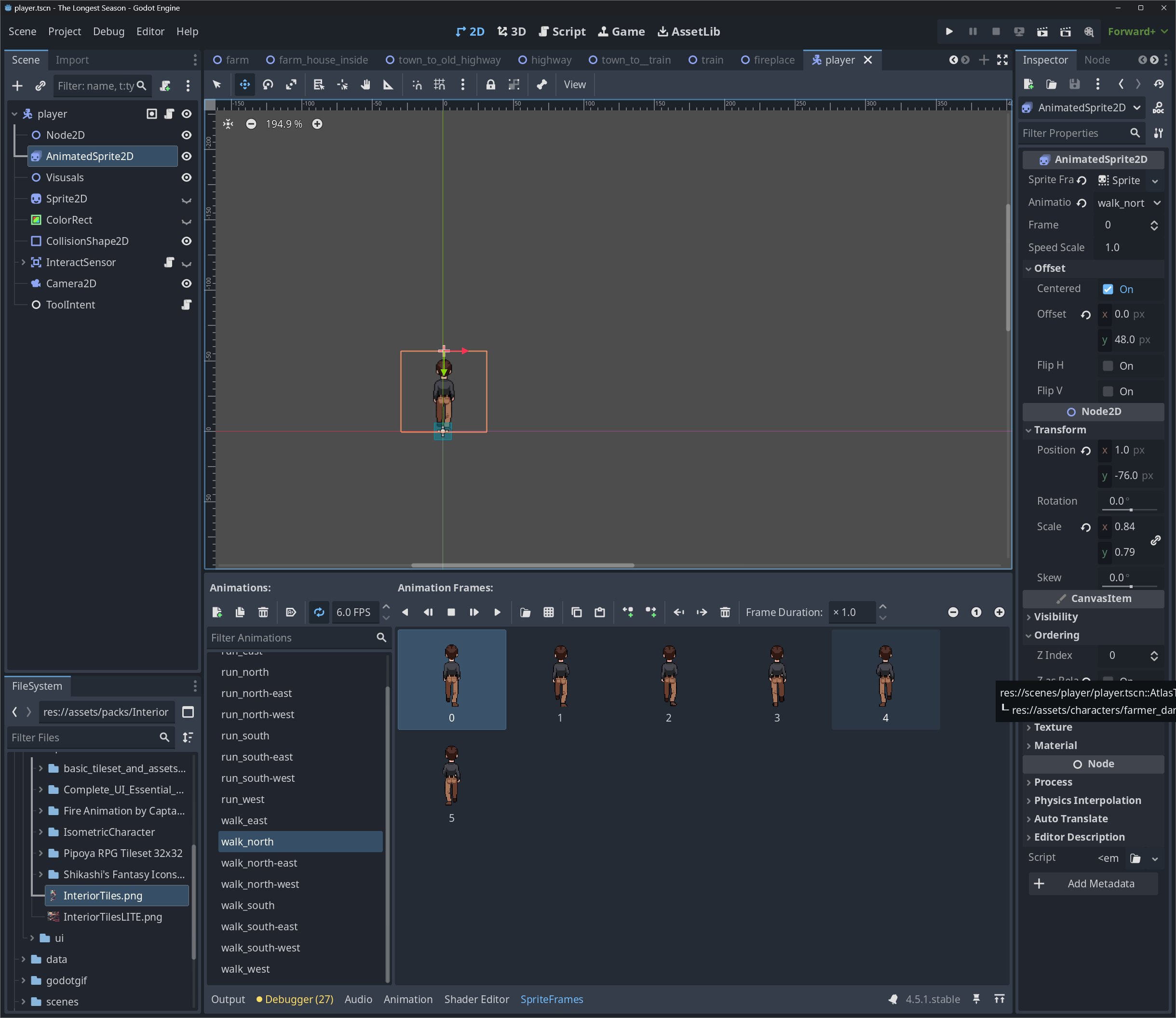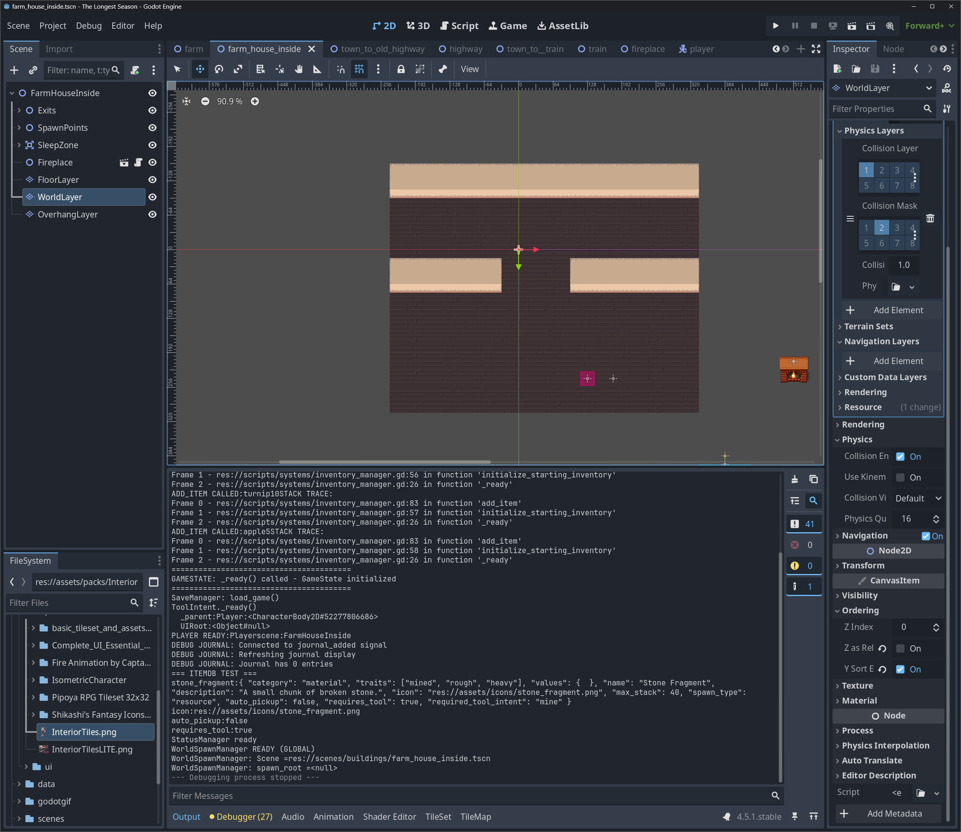 Hey I for the life of my cannot figure out how to get the Y sort out on my game..My player scene is an autoload, I have too many scenes and have already got a working system all the way around working with my player right now(time, save, stats, inventory, journal) but my issue is, in my house interior and soon to be every other interior say I go into the bedroom, I’m behind the wall like I want to, but if I go into the kitchen and approach the wall I still am going behind it..I do have physics right so at least my feet show lol does anyone have any ideas as how to make that work?